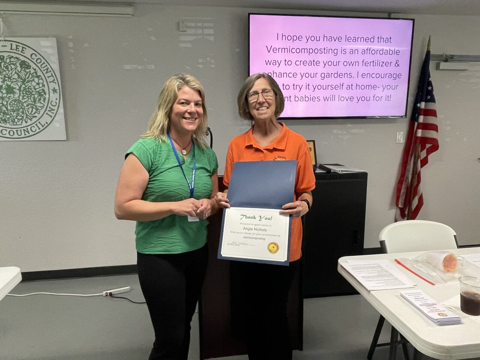 Our speaker Angie Nichols.  Her topic was vermicomposting - what an interesting talk!  Everyone enjoyed Angie's message!